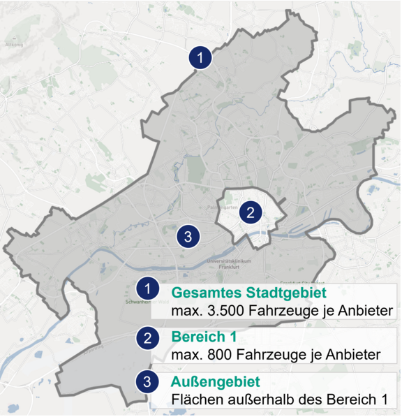Die Festlegung der Anzahl der Anbieter auf drei soll eine optimale Überwachung und Regulierung ermöglichen, den Anbietenden den Betrieb einer wirtschaftlich tragfähigen Flottengröße gewährleisten und den Kundinnen und Kunden eine attraktive und übersichtliche Anbieter-Auswahl sowie jeweils eine große Fahrzeugflotte und bestmögliche Fahrzeugverfügbarkeit bieten. Aktuell sind fünf Anbieter in der Stadt tätig, voraussichtlich ab März kommt ein sechster hinzu.