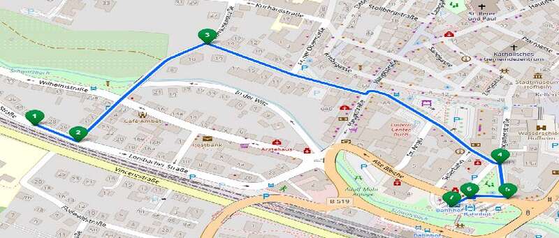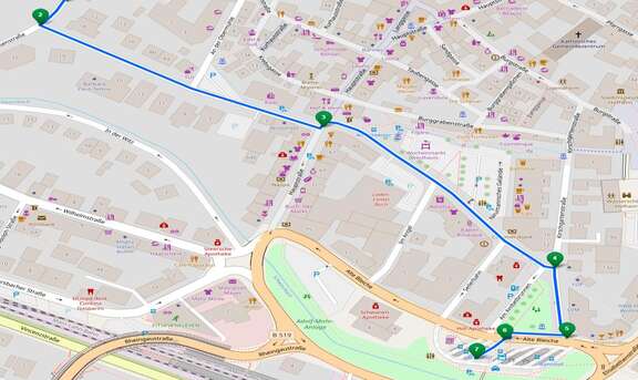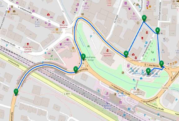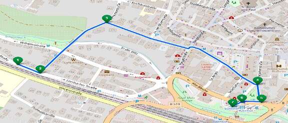 Es kommt zu keinen Haltestellenentfällen. Die Linien verkehren auf einem geänderten Linienweg. Sie fahren von der Haltestelle "Römerstraße" kommend nach links in die Alte Bleiche, dann links in die Seilerbahn, weiter über Am Untertor und schließlich rechts in die Kirschgartenstraße. Die Einbahnstraßen wurden angepasst.