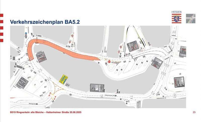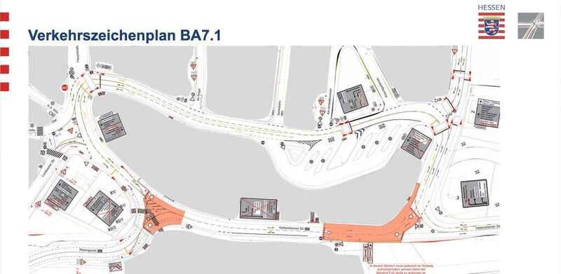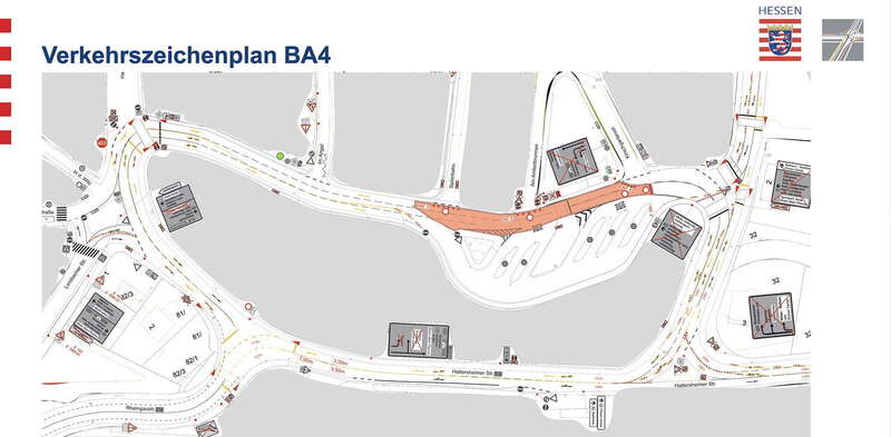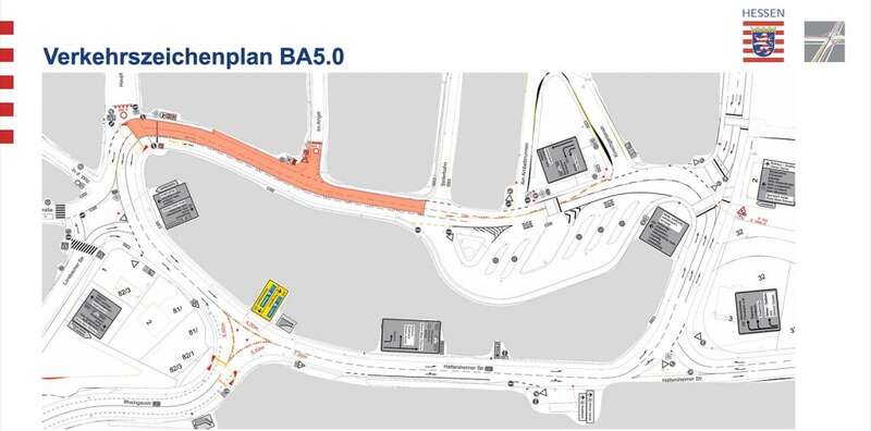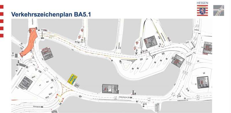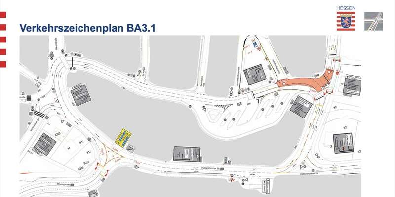 Bauabschnitt 1 beginnt am Mittwoch, den 22. Oktober 2025. Gesperrt wird die Hattersheimer Straße zwischen der Rheingaubrücke und der Ausfahrt zum DB-Parkhaus. Während dieser in etwa achtwöchigen Vollsperrung wird der Verkehr auf der Rheingaubrücke mit einer Ampelanlage geregelt. Fahrzeuge aus Marxheim werden nach links in den Ringverkehr geführt. Für die Busse bleibt die Zufahrt zum ZOB möglich, dafür wird die Einbahnregelung in der Kirschgartenstraße umgekehrt.