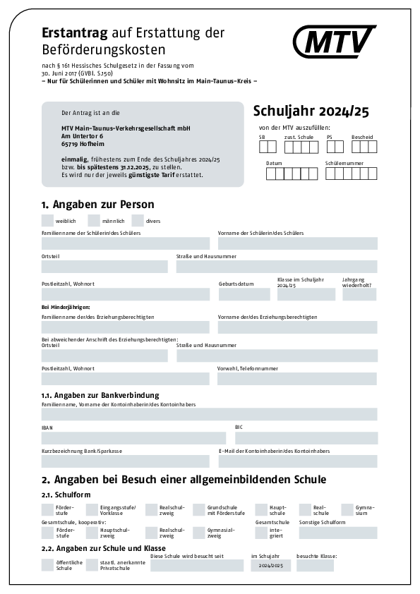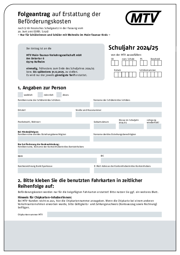 Die Erst- und Folgeanträge erhalten Sie im Service Büro der MTV, in Schulsekretariaten und online als PDF-Datei (s. unten).
