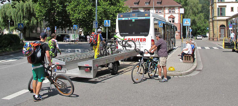 - Das Fahrrad darf maximal 25 kg wiegen. Sie stellen es selbst auf den Anhänger. Das Fahrpersonal sichert die Ladung. Eine Reservierung ist nicht möglich. Kinderanhänger und S-Pedelecs (E-Bikes mit Kennzeichen) können nicht transportiert werden.