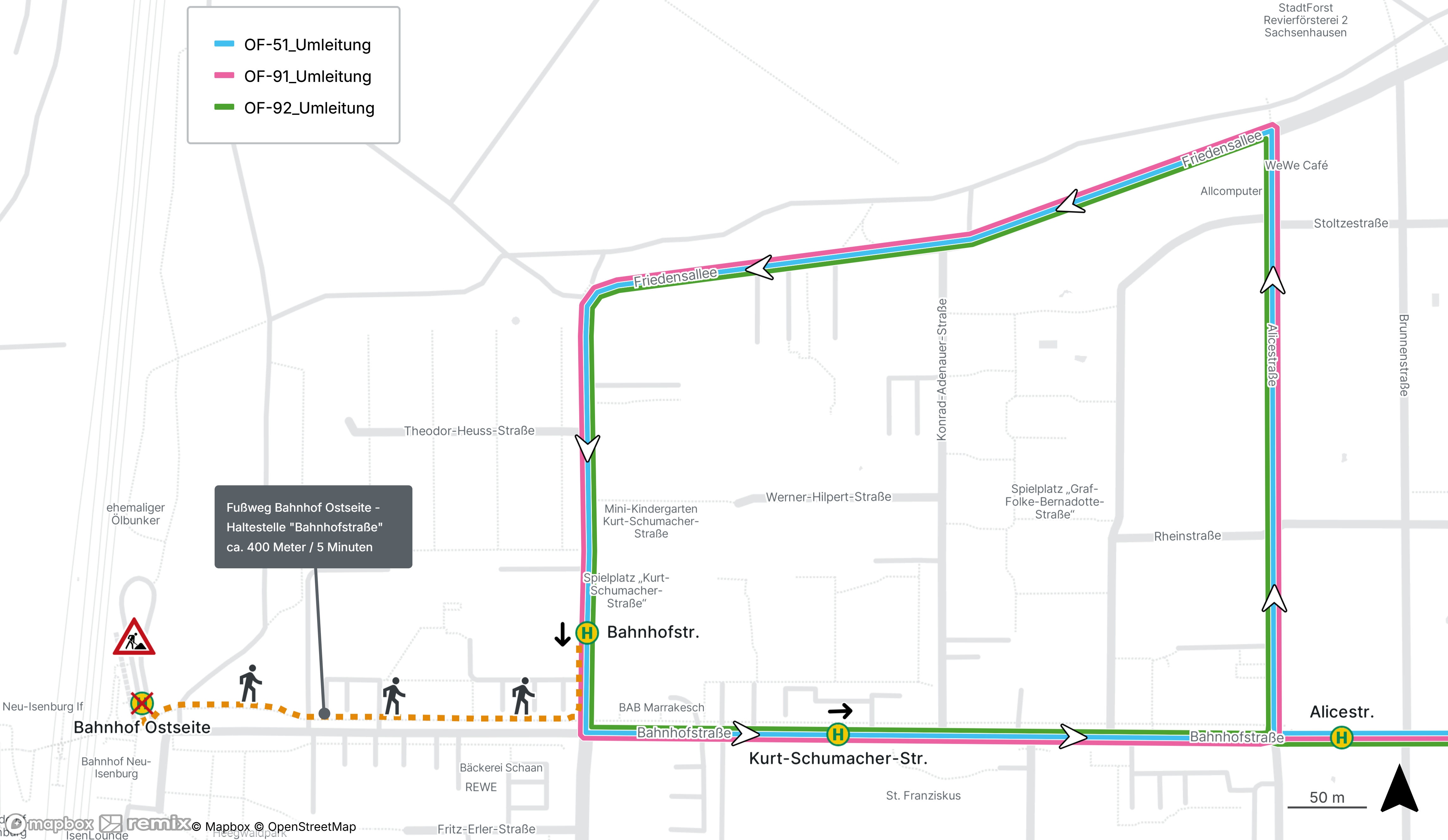 Linie OF-64: Geänderte Linienführung und Abfahrtszeiten aufgrund von Sanierungsarbeiten
