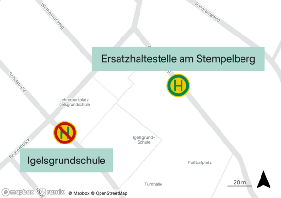Eine Ersatzhaltestelle wird hinter der Schule in der Straße „Am Stempelberg“ eingerichtet.