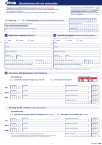 Bestellschein für ein JahresAbo • Abgabe des ausgefüllten Bestellscheins bitte bis zum 10. des Vormonats. Bitte Bestellschein in DRUCKSCHRIFT ausfüllen. • Bei einmaliger Vorauszahlung in der