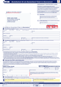 Bestellschein für ein Deutschland-Ticket im Abonnement Bitte Bestellschein in D RU C K S C H R I FT ausfüllen. Informationen zur geschlechtergerechten Sprache Im Interesse einer besseren Lesbarkeit