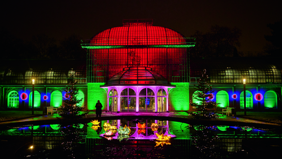Im Frankfurter Palmengarten erhellen diesen Winter wieder tausende Lichter das Gelände. Bis Sonntag, 11. Januar, verwandelt „World of Lights“ den Garten nach Einbruch der Dunkelheit in eine stimmungsvolle, leuchtende Landschaft. Unterschiedliche Lichtobjekte sowie Klang- und Videoinstallationen schaffen eine besondere Atmosphäre. So wird der Spaziergang für Besucher zu einem außergewöhnlichen Erlebnis.