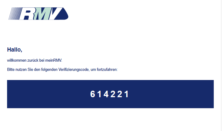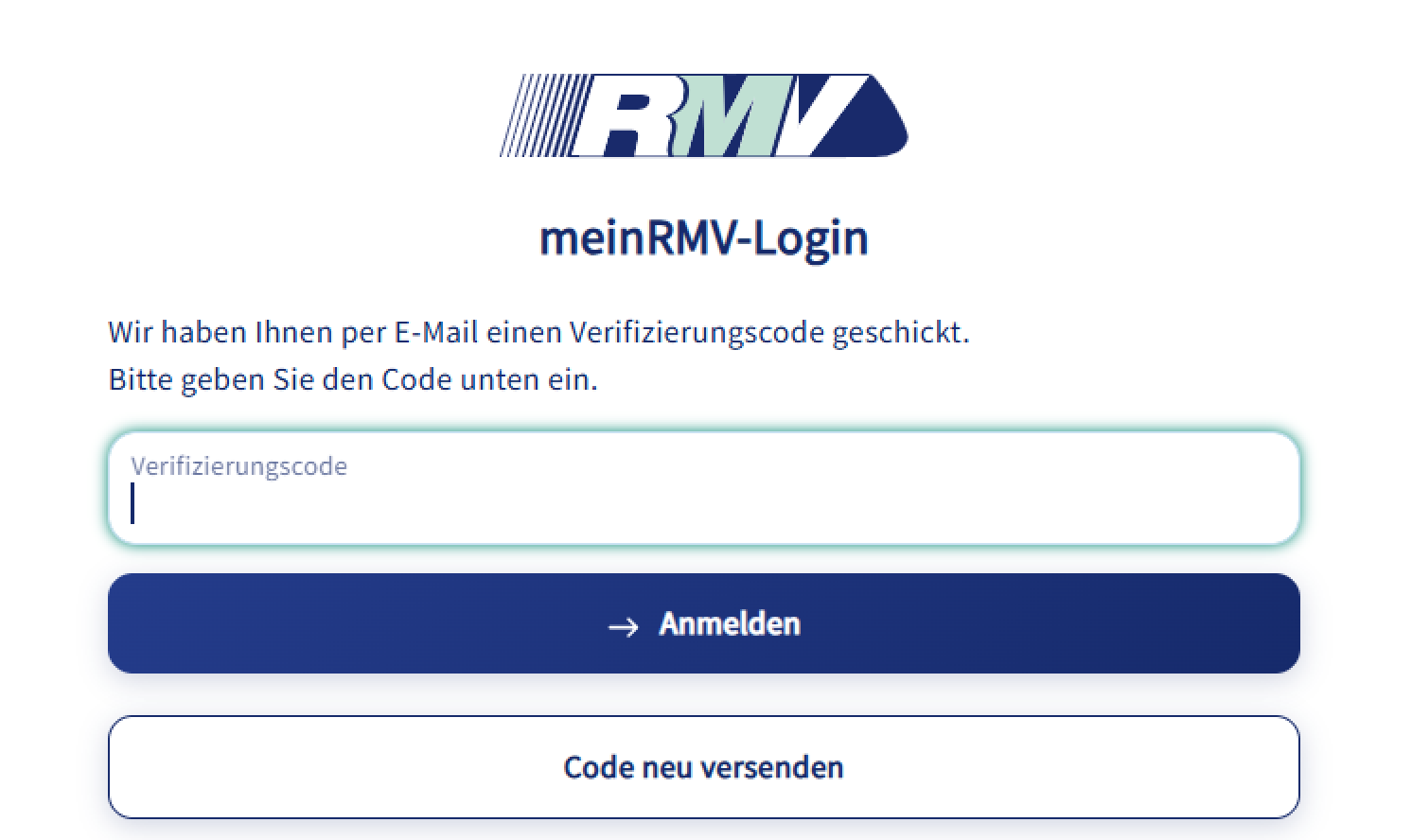 Neben Ihrer E-Mail-Adresse und Ihrem Passwort geben Sie beim meinRMV-Login zusätzlich einen einmaligen Verifizierungscode ein.